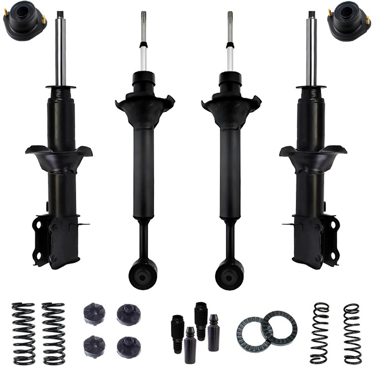 4 عدد(دو عدد کمک عقب و دو عدد کمک جلو) + 2 عدد توپی سرکمک + فنر لول جلو و عقب هر کدام 2 عدد + گردگیر کمک جلو و عقب هر کدام 2 عدد ،لاستیک نرومادگی 2 جفت ، منجیت فنر لول جلو و عقب هر کدام 2عدد