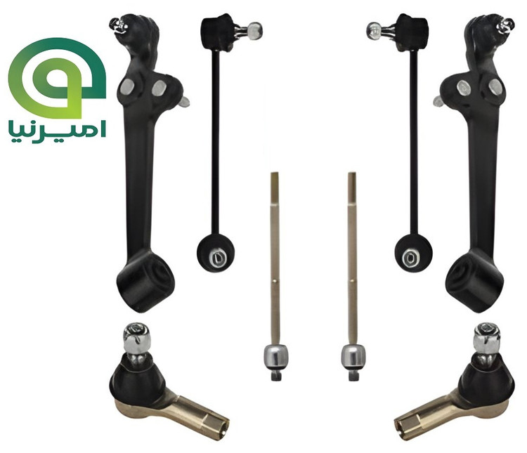 مجموعه 8 عددی برند امیرنیا شامل قطعات باکیفیت و استاندارد است که نیازهای تعمیر و تعویض سیستم جلوبندی خودرو شما را به طور کامل پوشش میدهد. این مجموعه شامل: