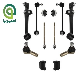 عدد طبق کامل ، 2 عدد سیبک (چپقی) فرمان ، 2 عدد میل موجگیر(تعادل) ، 2 عدد بوش تعادل، 2 عدد گوی فرمان و 2 عدد لاستیک چاکدار